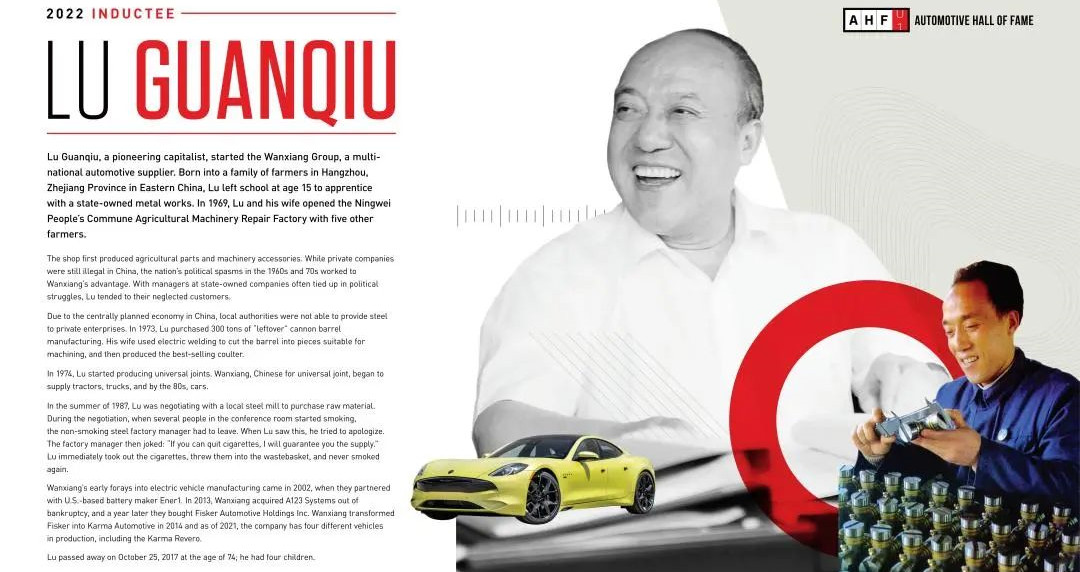 万向创始人鲁冠球入选汽车名人堂 为首位获此殊荣的中国人